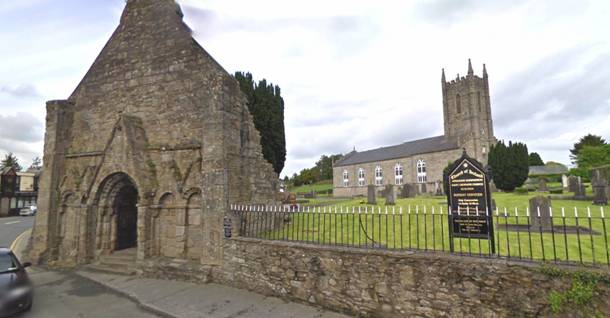 In the foreground is the entrance to the ancient St. Cronan’s Monastery in Roscrea, Co. Tipperary. In the background is St. Cronan’s Church which was built on the ruins of a much earlier church. The Coonan name has been associated with the church in Roscrea since prior to 1000 A.D.