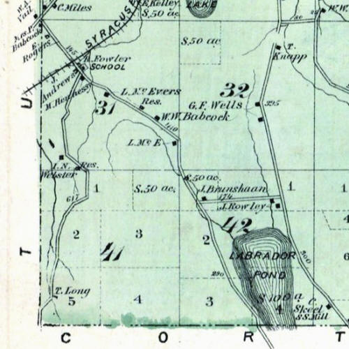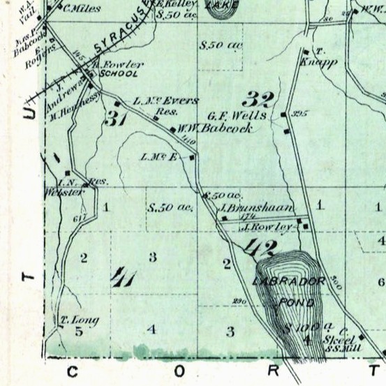 ![]() This 1874 map of the southwestern corner of the Town of Fabius shows the property of Thomas Long in Sub-division 5 of Lot # 41 |