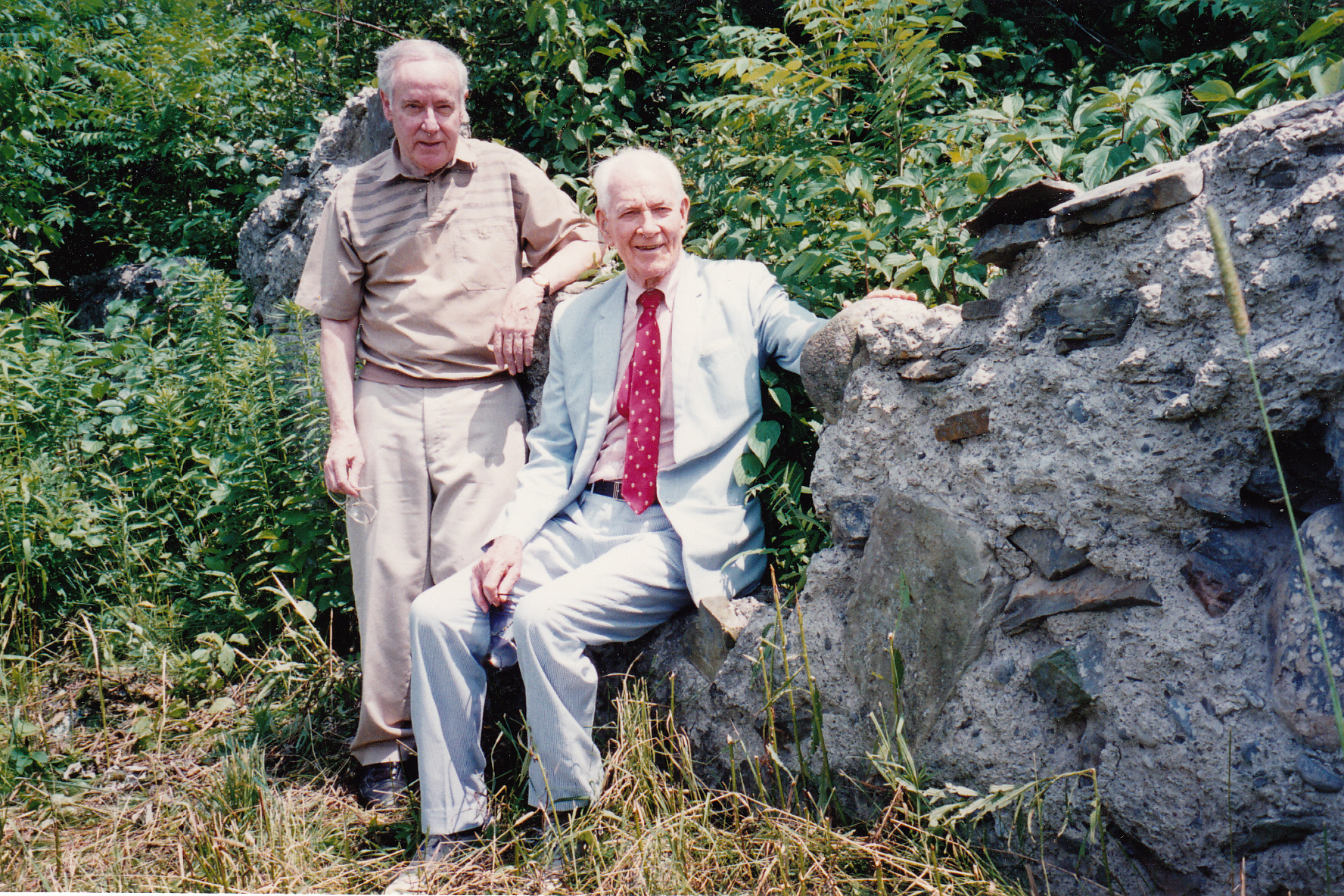 ![]() A reunion photo of Dick Long (on the left) and Fran Breen was taken in 1994 at the site of the Thomas Long barn. Fran is married to one of the descendants of Lawrence Long (eldest son of Thomas Long the pioneer). Photo by Norah Breen. |