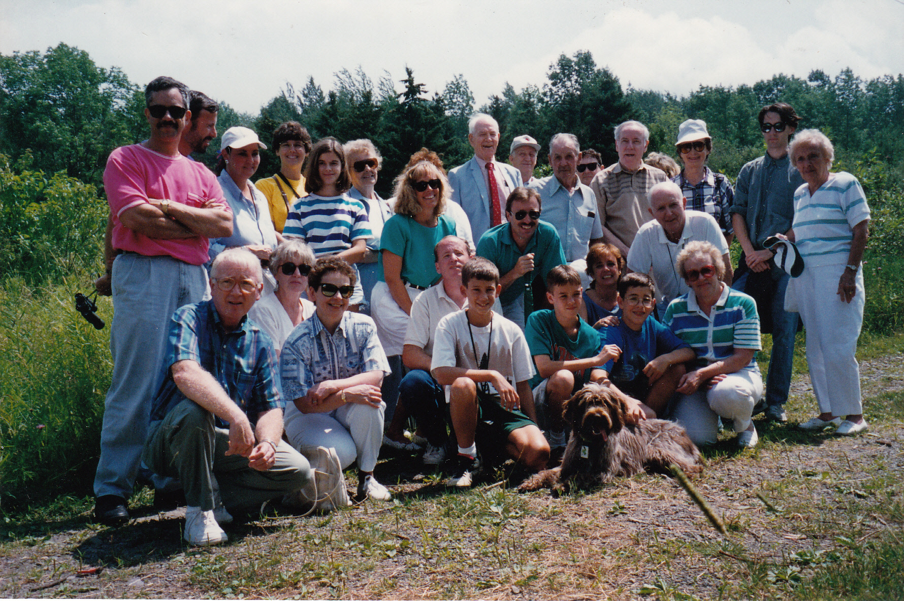 Richard F. Long, whose search for his roots led me to the land I describe in this story, died on December 5, 2011 at the age of 85. Uncle Dick inspired many in the family to pursue the story of the Long family's journey from Tipperary to Onondaga County. - Stephen Long This is picture of the 1994 Long Family Reunion on the site of their ancestor Thomas Longs farm in the southwestern corner of the town of Fabius, Onondaga County, NY. Richard F. Long is 4th from the right, in the back row, next to the woman in the white hat. Photo by Norah Breen |