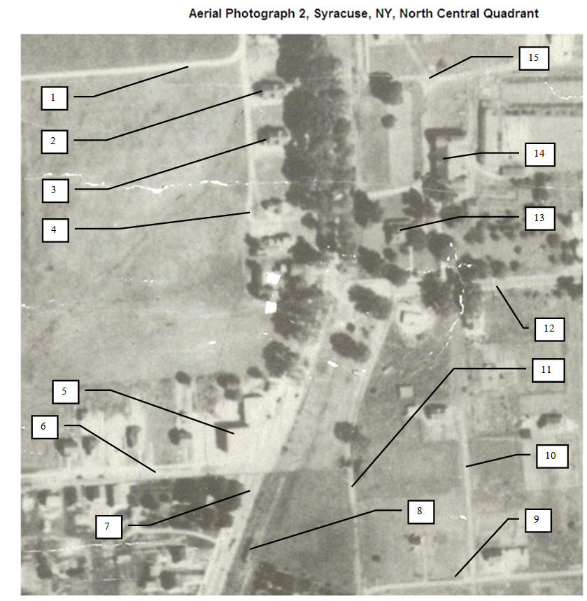 Aerial Photograph 2 (Syr26-2), Syracuse, NY, North Central Quadrant, Airmap of City of Syracuse, Charles H. Hanna, Mayor; Nelson F. Pitts, Jr., City Engineer; Made by Airmap Corporation of America, Brooklyn, NY, November 1926. Contributor - Digital Imaging Services Center, Syracuse University Library