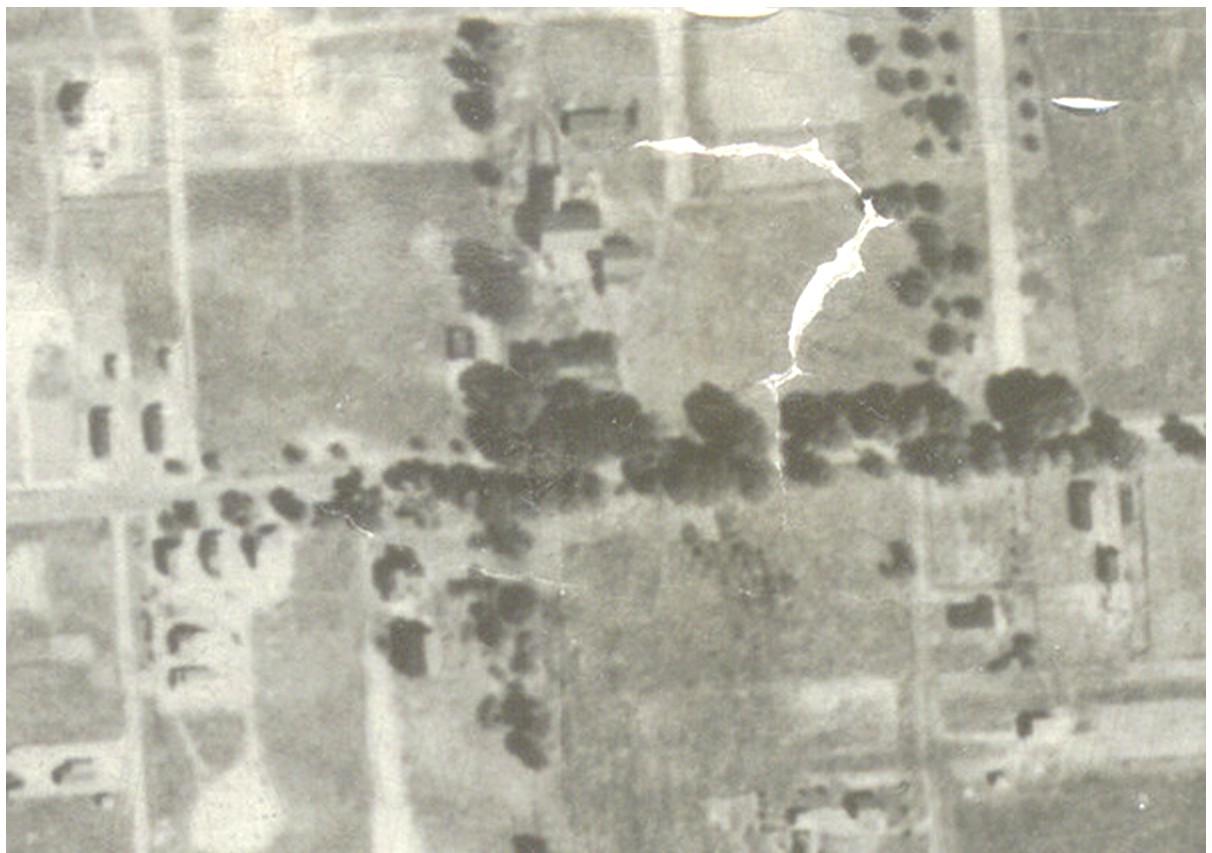 The north-south row of trees marks the boundary
