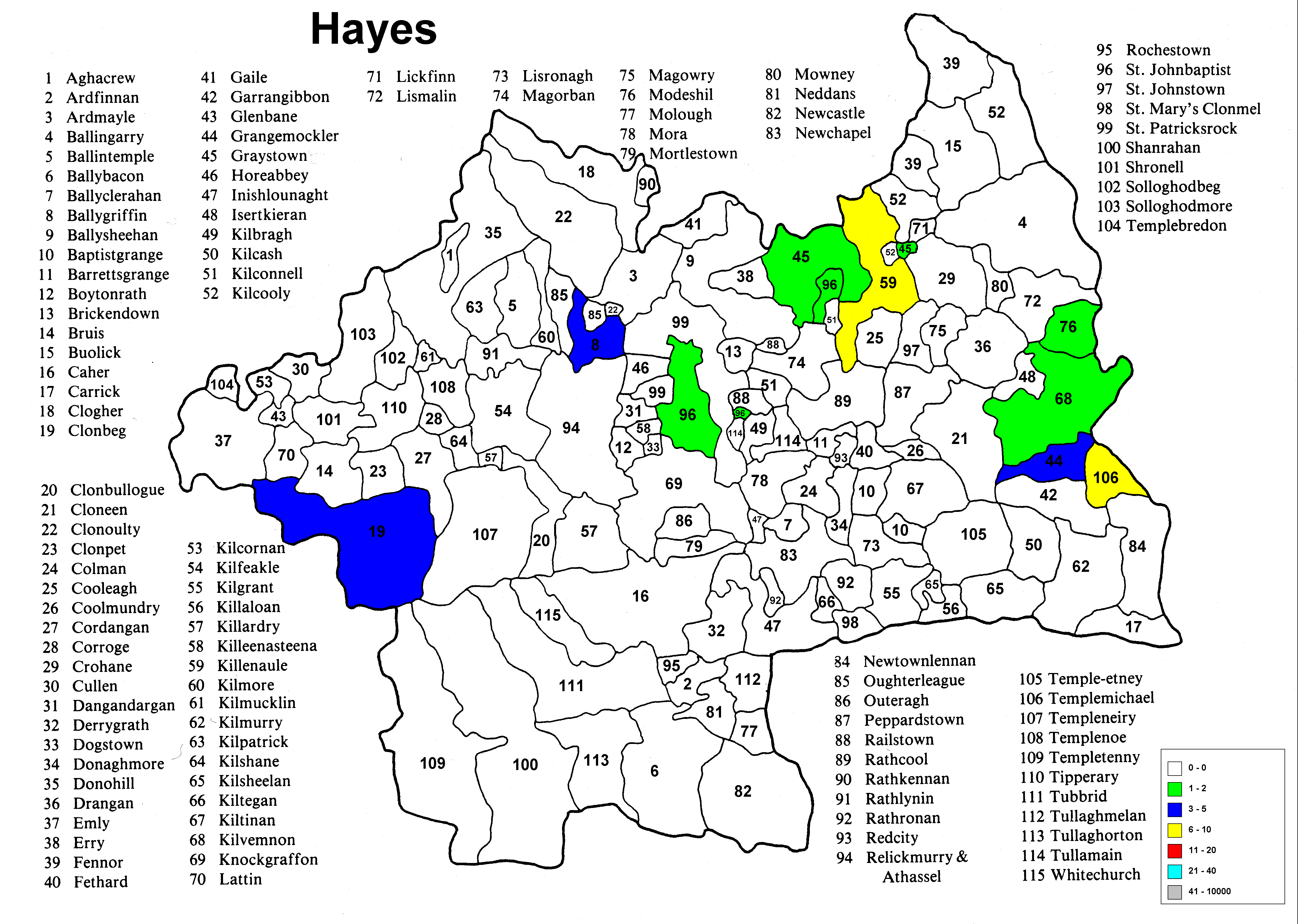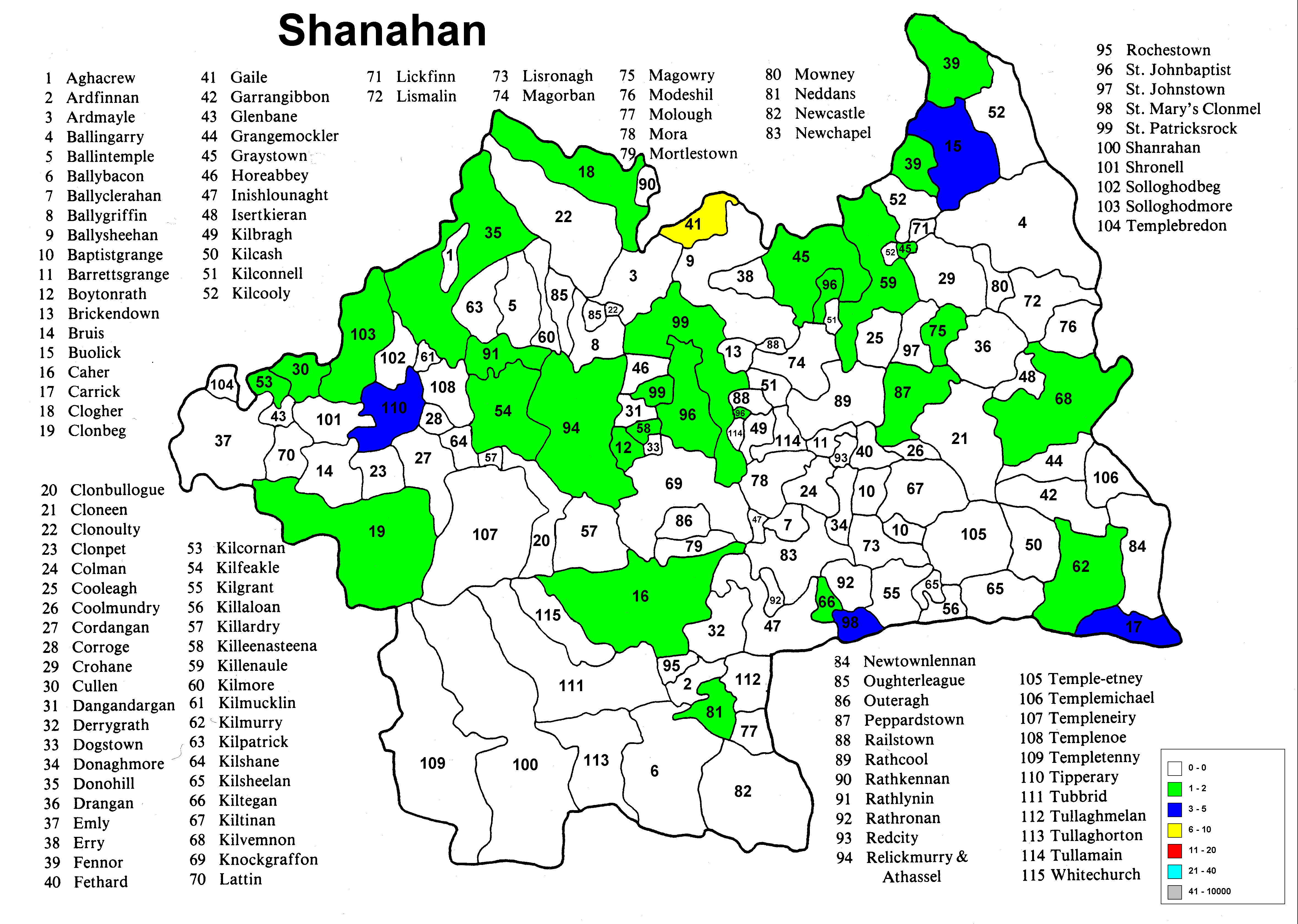 At present only the Co. Tipperary map has been analyzed and measured and fully incorporated into the program.