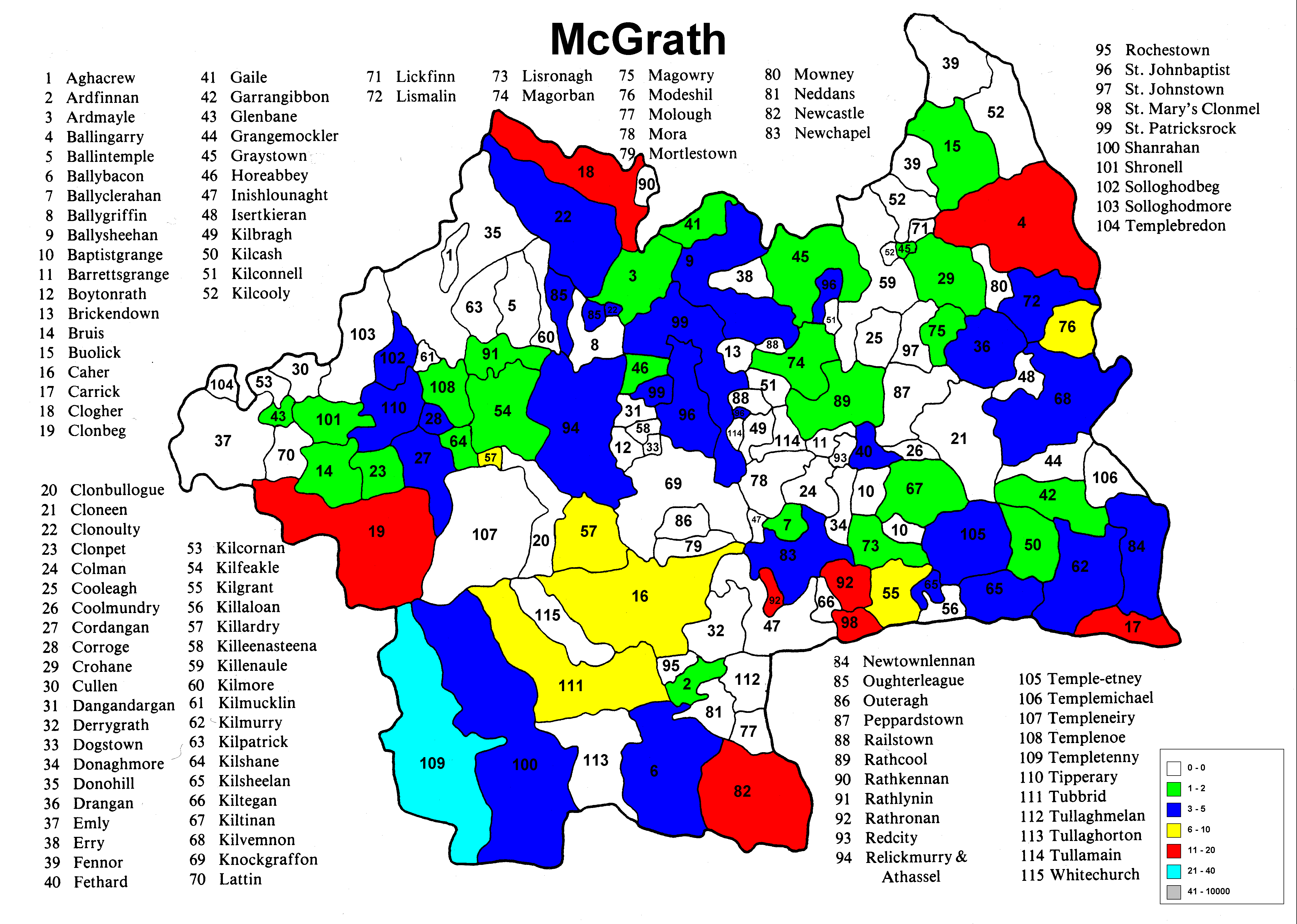 Tipperary Surname Distribution Maps ~1851