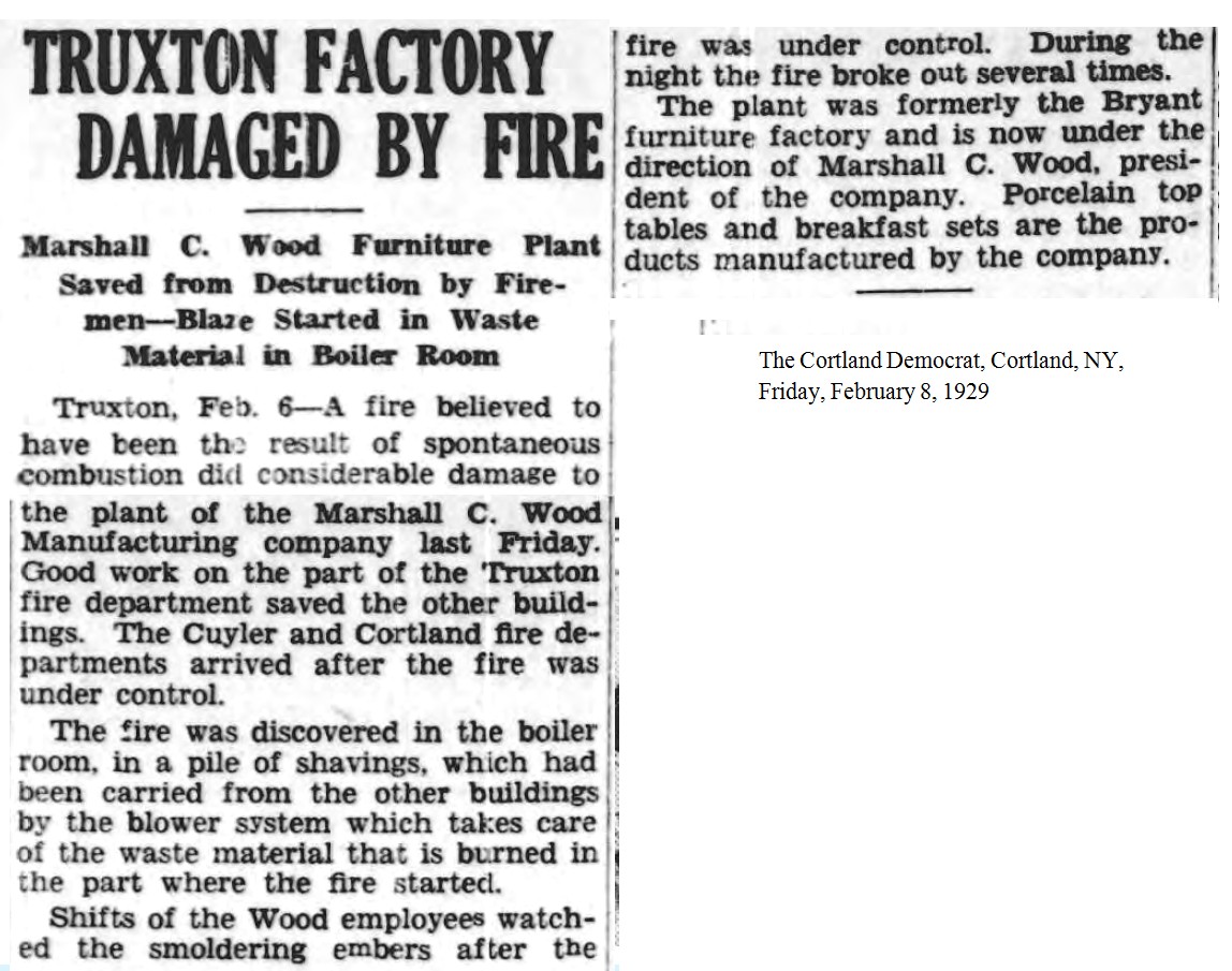[1929-02-08] - “Truxton Factory Damaged by Fire,” The Cortland Democrat, Cortland, NY, Friday, February 8, 1929.