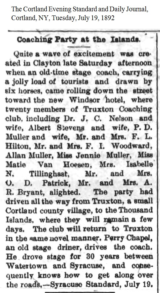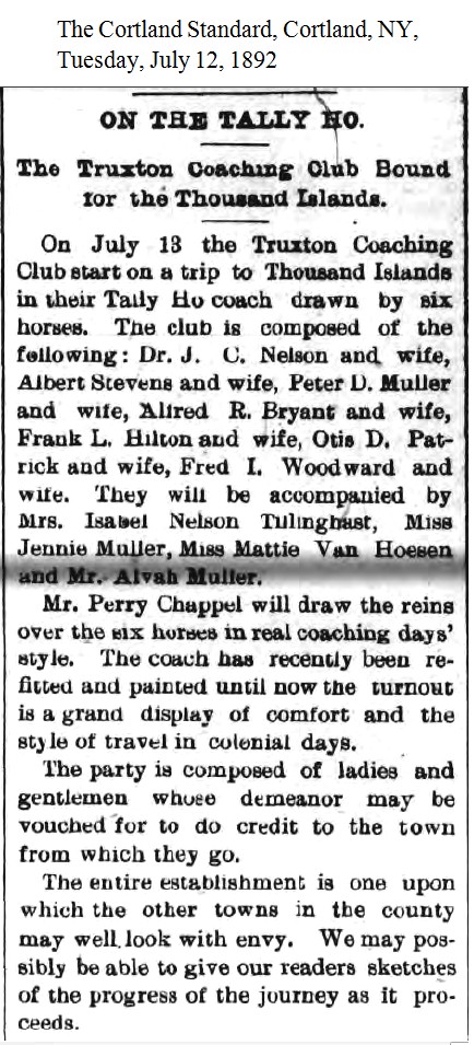 Coaching Party at the Islands The Cortland Evening Standard and Daily Journal, Cortland, NY, July 19, 1892 |