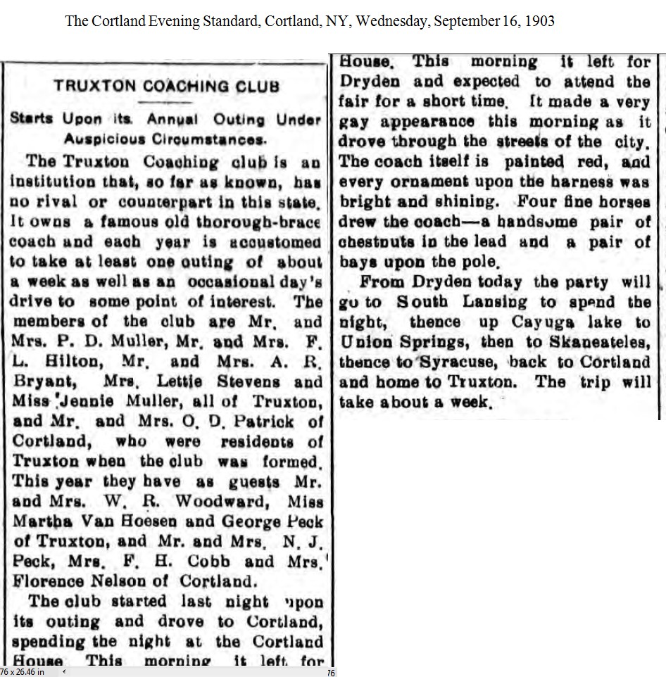 The Coaching Club Begins Its Annual Trip The Cortland Evening Standard, Cortland, NY, Wednesday, September 16, 1903