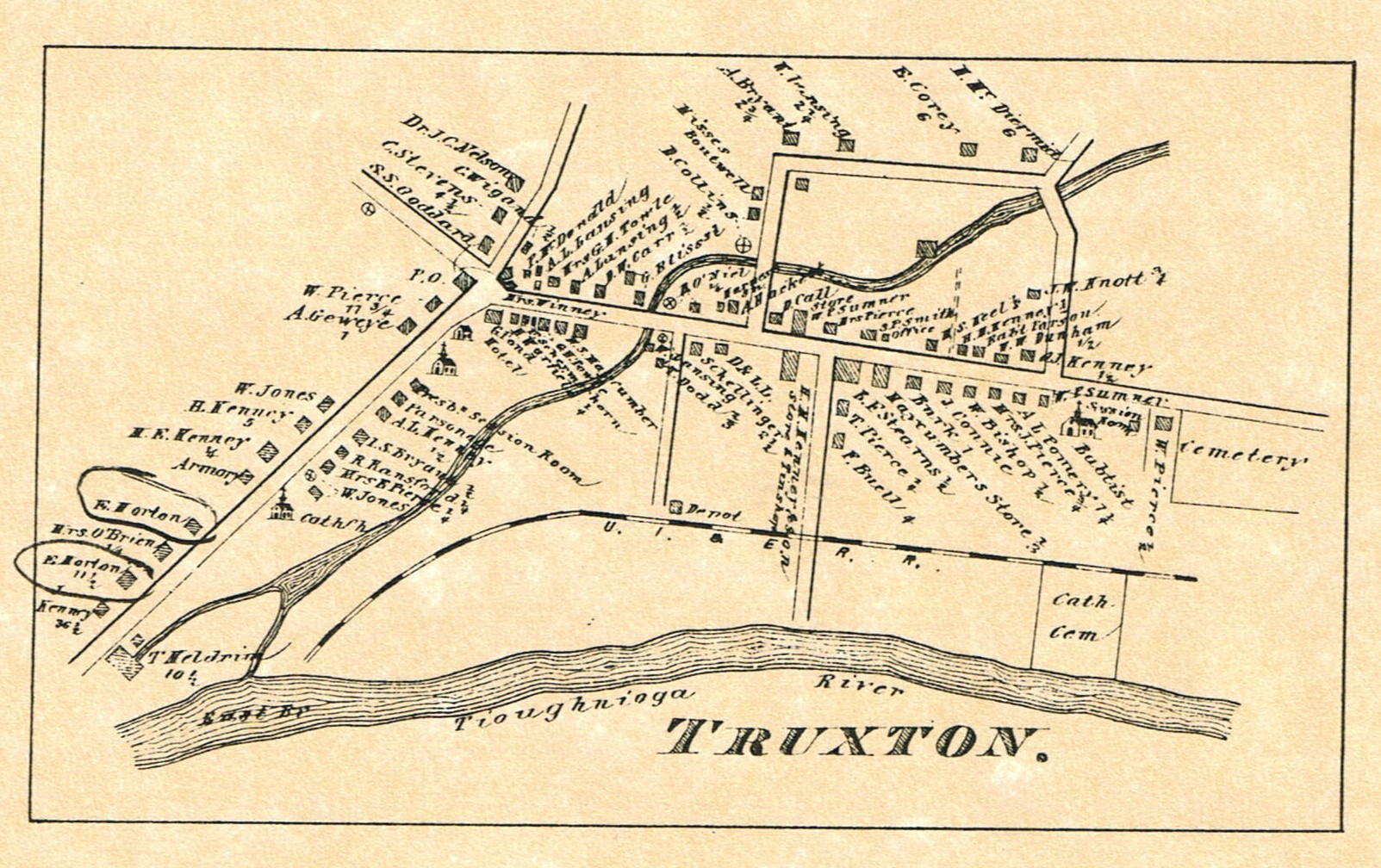 ![]() 1874 Truxton Village Map List of names appearing on the map |